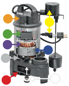 No coated wiring here...only 100% solid copper motor windings featured in all Superior Pumps.   We design, build, test and install our own motors to ensure that every Superior Pump is Built to Last.   Piggyback float switch & 10’ power cords come standard on ALL submersible sump, effluent & sewage.   Every pump is approved by:
